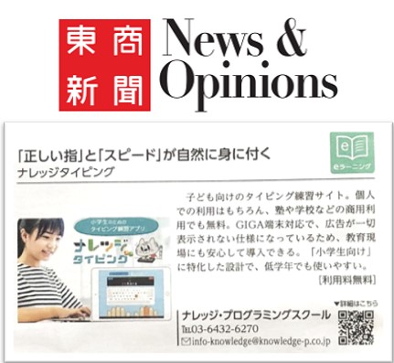 東京商工会議所が発行している「東商新聞」にナレッジタイピングが掲載されました!商工会議所といえば、大河ドラマでも有名になった創立者で初代会頭の「渋沢栄一」。来年、1万円札の「顔」になりますよね。そうだっ!新しい「お札」のコースを作ろう♪ ⇒最高点338点とったよ(YouTube) https://youtu.be/L6UyrXt1RbI